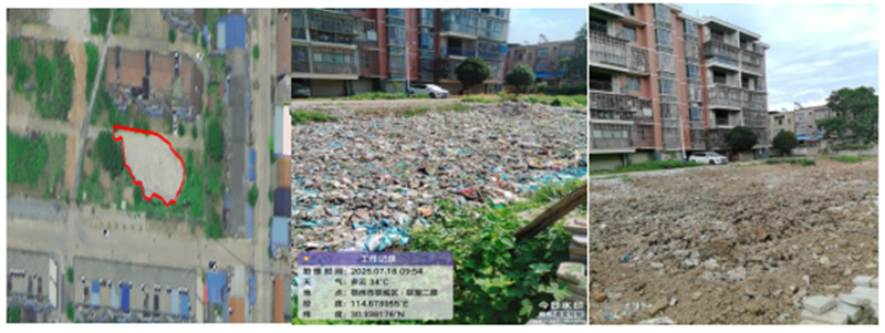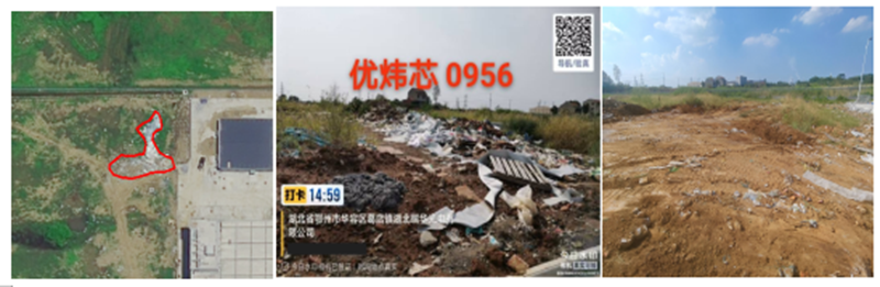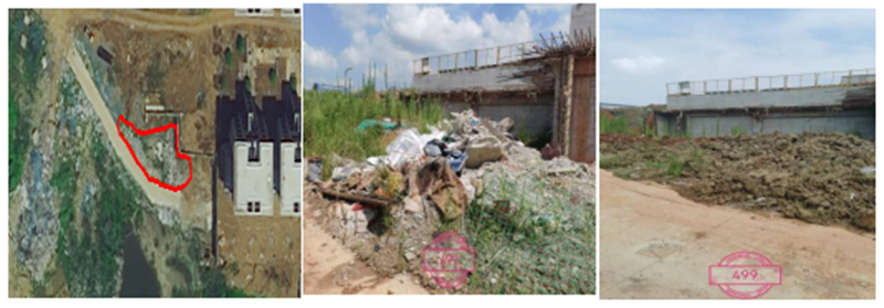 ▲葛店经济技术开发区葛店镇高新社区第四网格建筑垃圾点卫星遥感图片及整改情况