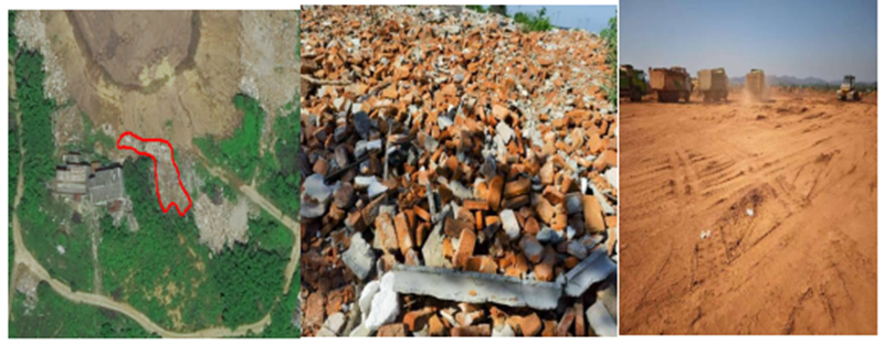 ▲临空经济区燕矶镇坝角村第一网格建筑垃圾点卫星遥感图片及整改情况