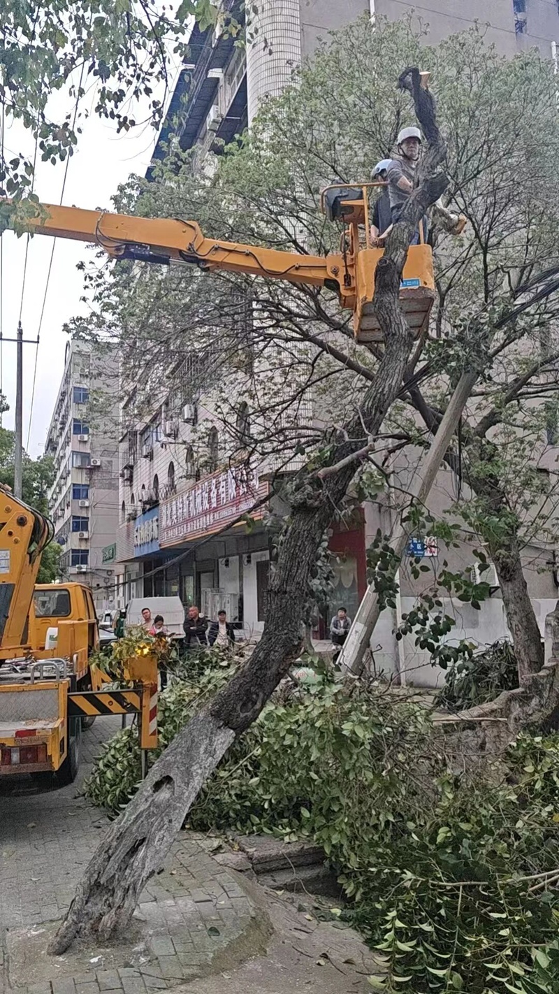 4月8日,鄂州阵风达7至8级,落驾坪路段一根电线杆断裂倾斜,压覆行道树致其枝干摇晃、部分断裂,严重威胁行人和车辆安全。“险情就是命令,安全重于泰山。”市绿化管理处接到险情报告后,第一时间启动应急处置预案,迅速集结抢险队员赶赴现场,联动电信鄂州分公司划定警戒区域、引导通行,顶着大风修剪固定树枝,移除倾斜树木和断裂电线杆,清理杂物,数小时后隐患消除,道路恢复通行。