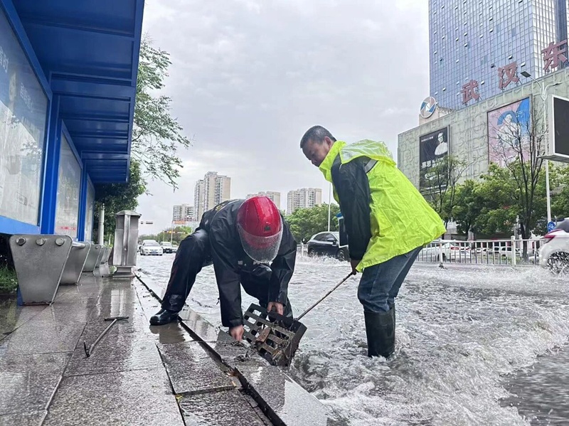 市市容环卫中心同步高效行动,加大道路保洁力度,组织人员重点清理排水口处的落叶、杂物等堵塞物,防止排水受阻导致积水加剧,同时加密生活垃圾收运频次,及时清运各垃圾站点积存垃圾,全力保障道路畅通整洁、城市环境有序。